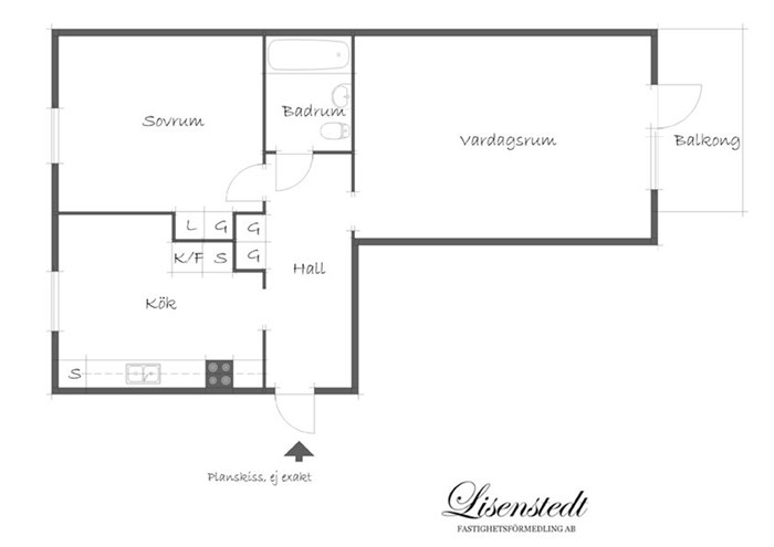 - 2 rum varav 1 sovrum. Boarea 49,6 m². Boareauppgift enligt bostadsrättsföreningen.