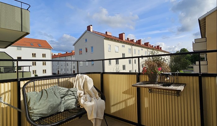 Stor balkong i sydvästläge i attraktiva Tingvalla precis intill pendeltåget. Två förråd!