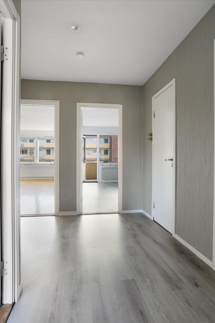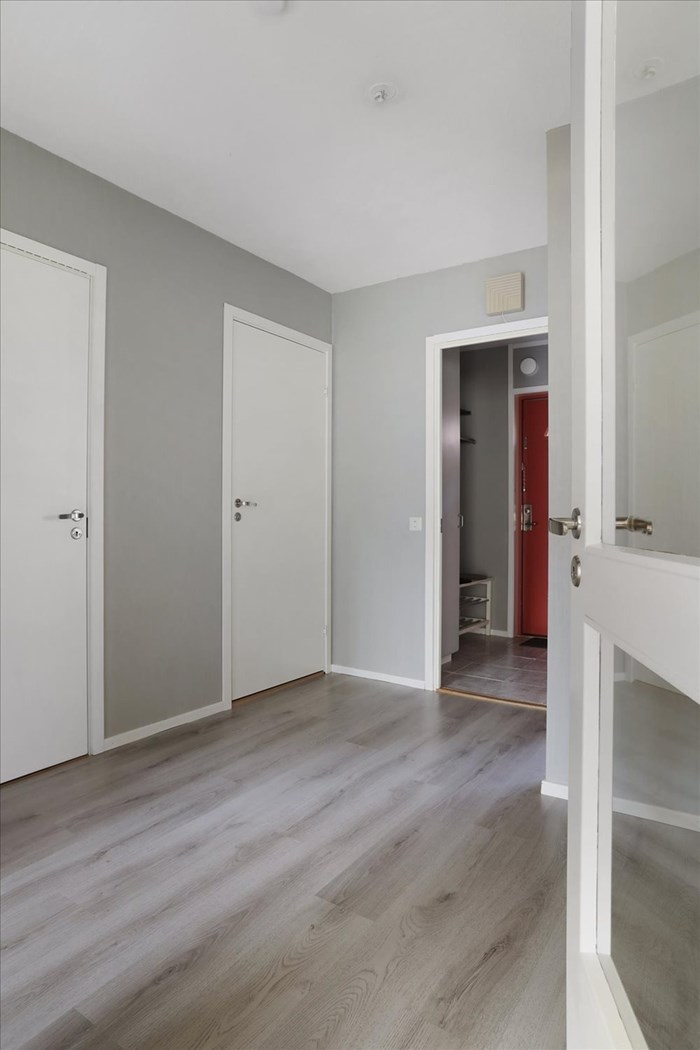 - Laminatgolv och målade tapeter. Utgång till möbleringsbar balkong. Från sovrummet når ni såväl vardagsrummet som den möbleringsbara inre hallen.