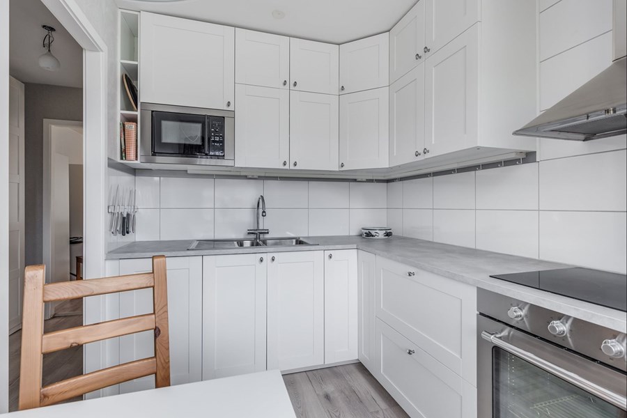 På Bergkullevägen 303 finner ni denna ytterst fräscha enrumslägenhet om 37,5 kvm där värme, vatten, hushållsel och bostadsrättstillägg ingår i avgiften om 2 943 kr och föreningen har dessutom avtalat fram ett kanonavtal till sina medlemmar för fiber och tv-kanaler till endast 133 kr/månad. Dessutom med ett smakfullt renoverat kök med nya stommarna och vitvarorna (ej kyl/frys) och ett nyrenoverat badrum från 2019, där ni finner läcker handdukstork (vattenburen) och en stor kommod (vi älskar bra förvaring!). Våtrumsintyg finns och överlämnas till köpare i samband med tillträdet. Vidare erbjuds ett lättmöblerat allrum med utgång till balkong i grönskande söderläge, dvs med gott om soltimmar sommartid. Själva bostaden har genomgående fått nya ytskikt år 2018-2019 i ljusa och moderna färgval, men önskar en köpare sätta egen touch så används förslagsvis de 1 045 kr som finns i den inre reparationsfonden, då dessa tillfaller köparen. Förvaringsmöjligheter finns det gott om i lägenheten och då i hallen, förvaringen i köket och i kommoden i badrummet, men känns det inte tillräckligt, så uppskattas nog källarförrådet som följer med bostaden, där ni har ett mått om ca 2,5 x 1,6 m. Notera gärna att föregående ägare har valt att ta ner den avskiljande väggen mellan f.d. kapprum och hall, vilket gör bostaden ljusare.