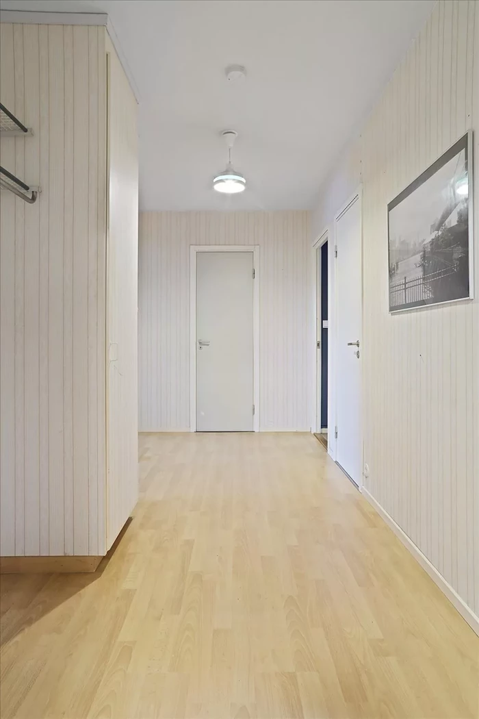 - Laminatgolv samt tapetserade väggar. Hatthylla.
