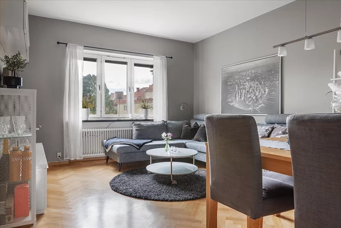 Letar du efter en ytterst läcker 1:a med genomgående planlösning (nästan ett måste om varma sommardagar), ett f.d. middags-/matrum som kan används som sovalkov/sovrum, utöver att bostaden ska gärna vara belägen högt upp i huset d.v.s. utan någon insyn och helst med utsikt över både lummig park och grönskande innergård? Då kan du sluta leta vidare då den här lägenheten har allt det där och med dessutom ytterst generös takhöjd, vackert ljusinsläpp från de tilltagna fönsterpartierna och har därtill ytterst hemtrevliga kulörval som gör att du kan flytta rakt in.
