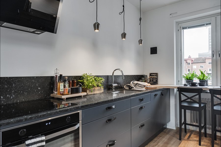 Underbar takhöjd. Första våningen (enstaka trappsteg upp). Renoverat kök. Fräscht skick! Diskmaskin.