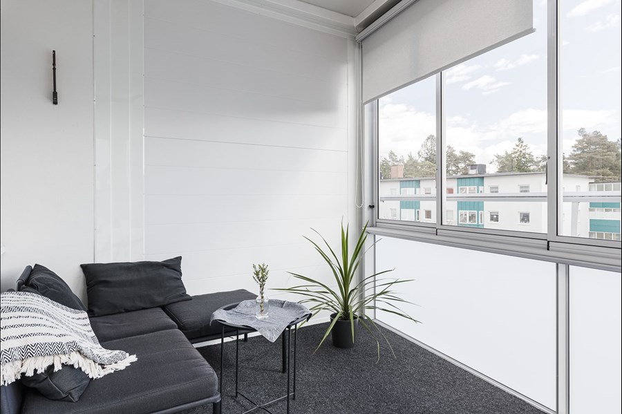 Inglasad balkong. Garage- & parkeringsplatser finns i föreningen (även till elbil & MC). Fräsch!