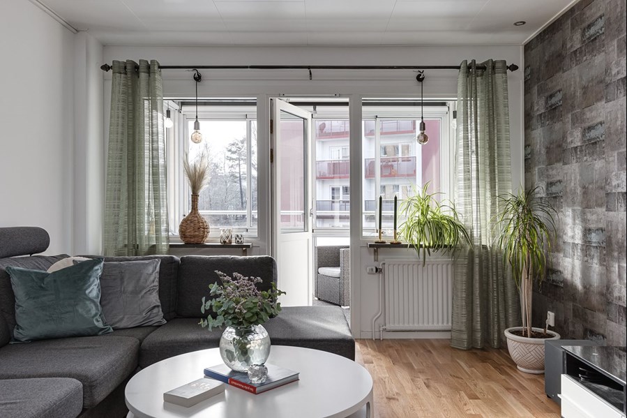 Ytterst trevlig tvårummare om ca 53 kvm belägen på behagligt våningsplan och då våning 2, dvs en bostaden som nås smidigt såväl via trapporna eller via hissen och då undvika trappsteg helt och hållet, vilket kan vara bekvämt vid in-/utflytt, tunga matkassar eller när musklerna tryter efter ett träningspass i föreningens gym eller utomhusgymmet uppe på höjden. Som pricken över i så finner ni även en tilltagen och inglasad balkong i härligt söderläge och med matta på golv, eluttag (perfekt till mobilladdare eller till minikylskåpet för lata dagar på balkongen) och rullgardiner - för de varma sommardagarna när solen skiner som mest eller när man vill titta på en film på tv ute på balkongen; bara för att man kan och vill. Dessutom erbjuder lägenheten renoverade ytskikt i kök, hall, sovrum och vardagsrum inkl. att öppningen mellan hall och vardagsrum har breddats. Därtill har säljaren investerat i LED-belysning (med dimmer) i nästan hela bostaden, varför elräkningarna varit ytterst låga trots att bostadsrätten även har en egen tvättmaskin (ingår). Önskar ni en tvättstuga så finns det flera i föreningen och närmaste är belägen i källaren. Men åter till bostaden där ni även har ett ytterst smakfullt moderniserat kök med köksbänkskiva i ek, kaklad vägg i kalksten vid köksbänk och med med bänkbelysning installerad under väggskåpen. Jordfelsbrytare och jordade eluttag har satts in utöver enhetligt parkettgolv (ek) som harmonisear fint med ekbänkskivan i köket. Även hallen har fått en röd tråd och då kalkstenen från köket som upprepas närmast ytterdörren, med dörrkamera (entrédörren har portlås). Samtliga rum har vitmålade väggar utöver tapetserad fondvägg med dimbara LED-spotligts för läcker stämningsbelysning. Allt som allt i en ytterst attraktiv bostadsrättsförening och där det i månadsavgiften ingår värme, vatten, TV, internet och elnät utöver att föreningen fakturerar hushållselen, varför ni slipper teckna separat avtal för detta. I föreningen finner ni även garage, parkeringsplatser, gym, bastu, pingisrum, hobbyrum, två miljöstationer, övernattningslägenhet, HSB-sal samt samlingslokal utöver tvättstugor samt grillplats med lekplats på innergården och cykelgarage. Åker ni kollektivtrafik så går flera linjer i omgivningarna.