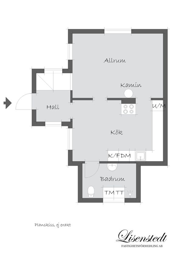 - Tapetserade väggar (Midbec Poetry Leksand). Skiffer på golv. Hatthylla. Förvaring under trappan.