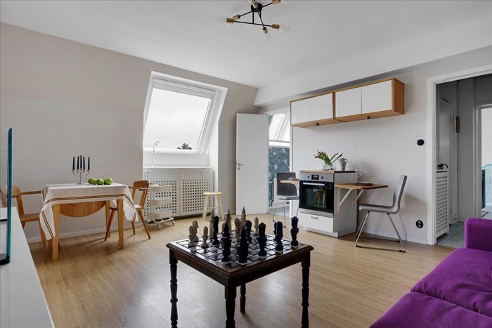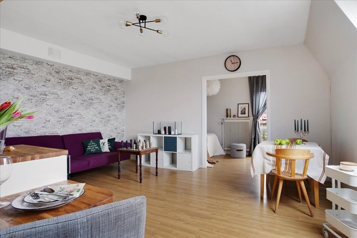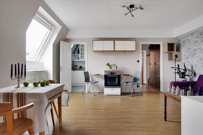 En smart planerad och trivsam vindslägenhet med fransk balkong och möjlighet att enkelt omvandla till en minitvåa. Perfekt för den som söker ett ostört, bekvämt boende i ett centralt men lugnt läge, med närhet till både service och kommunikationer.