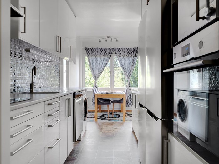 Ytterst fräsch fd. tvårummare som byggts om till en välplanerad och rymlig minitrea som upplevs betydligt större än sina 62 kvm. Här har ni en fin bostadsrätt som är i inflyttningsklart skick och där samtliga rum (exklusive badrummet) har renoverats under år 2021. Vi talar om nya ytskikt, nya innerdörrar inkl. dörrhandtag, ny el, nya strömbrytare och nya el-uttag. Köket renoverades inkl. köksstommar och fick även nya vitvaror. Badrummet har säljaren låtit vara som det är då det redan håller en hög standard genom helkaklade väggar, klinkers på golv med golvvärme utöver att det är förberett för tvättmaskin. I badrummet finner ni även en rymlig duschkabin så att mindre barn kan duscha själva utan att ni för den delen behöver oroa er för vattenstänk "överallt". För att skapa utrymme för den stora duschkabinen så har tvättmaskinen istället placerats i det renoverade köket, där ni även finner bland annat diskmaskin och dubbel uppsättning kyl/frys! Därutöver med påkostad (dyr) mosaikkakel ovan köksbänk och med läcker belysning i vitrinskåpet. Ni finner även en induktionshäll och varmluftsugnen är placerad på bekväm höjd; midjenivå. Bostaden har ni på ett smidigt våningsplan och då endast en våning upp och erbjuder även en underbar lummig utsikt och utan någon som helst insyn. Därtill har lägenheten även en inglasad balkong i ca sydostläge (med sol till ca 14-15 tiden) och tröttnar ni på solen och önskar skugga, så finns det rullgardiner som ni kan dra för. Kort och gott så har ni en fantastisk möjlighet att köpa en välrenoverad och kvadratsmart 3:a i en lågt belånad bostadsrättsförening och dessutom med låg månadsavgift om 3 575 kr där värme, vatten och bostadsrättillägg (en bostadsförsäkring) ingår. Föreningen har förhandlat fram ett kanonavtal till sina medlemmar och då tv-kanaler och internet (100 Mbits/s) för endast 183 kr i månaden (obligatorisk kostnad). Som om detta inte vore nog så hälsar ordförande att det eventuellt finns några lediga garageplatser (250 kr/månad/st) utöver att ni får två parkeringskort. Får ni långväga gäster så har föreningen en övernattningslägenhet med gratis wifi, fyra bäddar, kök och toalett för 100 kr/natt utöver att det även finns gym (gratis), cykelrum, hobbyrum, extra förråd för uthyrning samt en ny miljöstation. Har ni elbil så finns laddstolpar för även detta och inom kort så har föreningen även solceller på taken för att leverera el till sina medlemmar. Så ja, här har ni en modern bostadsrättsförening som är lågt belånad kombinerat med att flera stora och dyra renoveringar är utförda (exempelvis stambyte och takrenovering). Behöver ni tar en in till centrum eller tågstationen så ligger närmarste busshållplats ca 50 meter från porten och därifrån tar ni er in till Trollhättans järnvägsstation på endast 10 minuter. Ska ni handla så ligger välsorterade Hemköp Hjortmossen inom ca 950 m/13 minuters promenadavstånd. Så vad väntar ni på? Detta kallar vi för en möjlighet som heter duga. Relativt snabbt tillträde får att ordna om det är av intresse för en köpare.