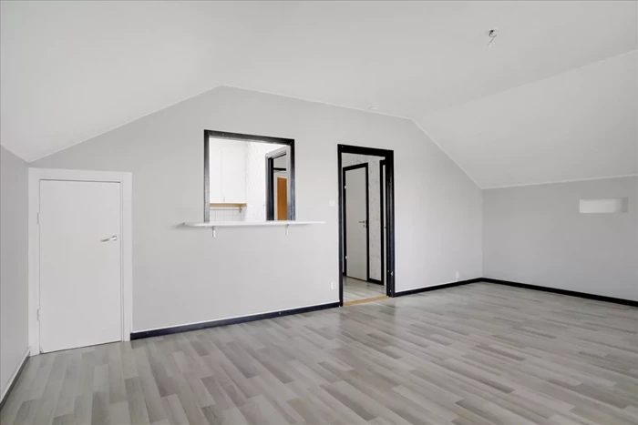 - Laminatgolv och målade väggar.