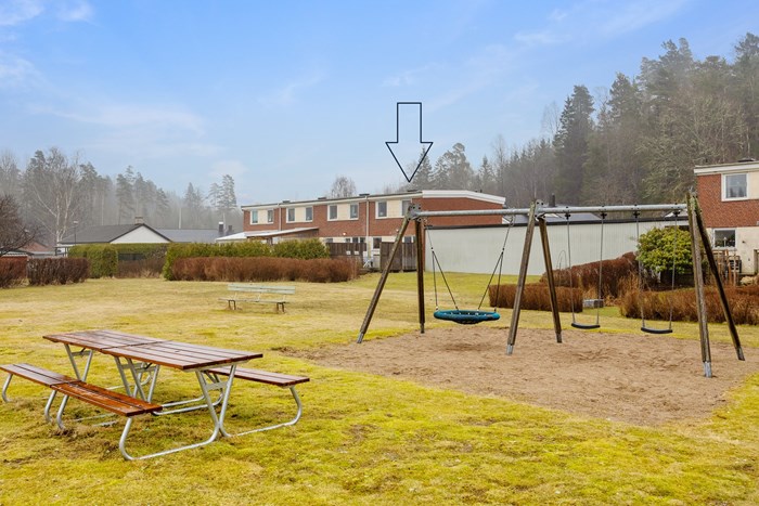 Läge: Utsikt mot barnvänlig innergård med lekplats.