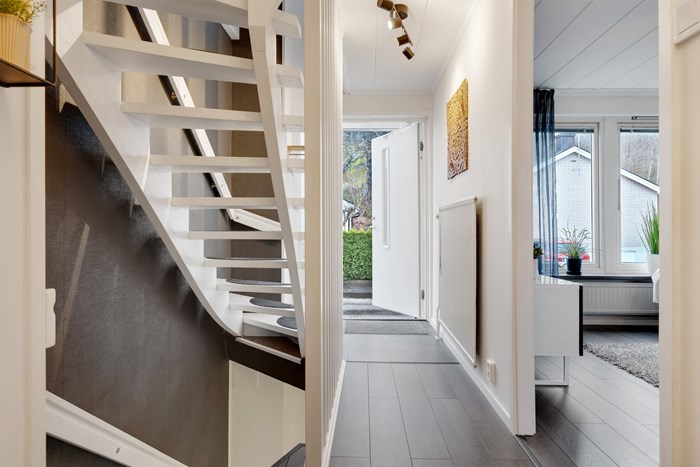 Bostaden är disponerad över två välplanerade våningsplan samt en generös källarvåning, vilket ger fantastiska ytor för både umgänge och förvaring. Genomgående planlösning med härligt ljusinsläpp ger förutsättningar för låga elräkningar utöver en inbjudande atmosfär direkt när du kliver innanför dörren.
