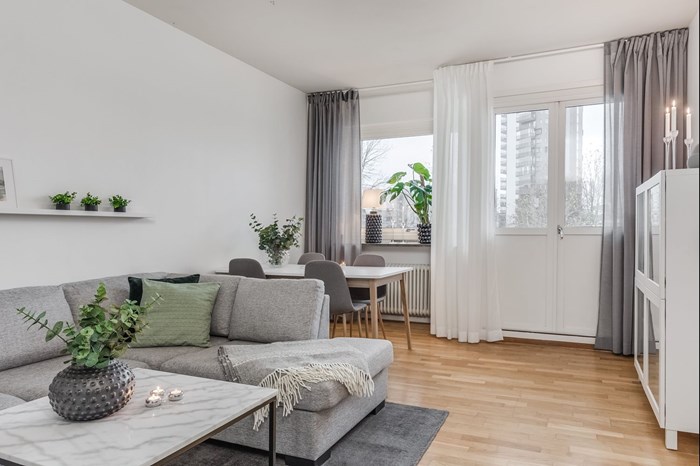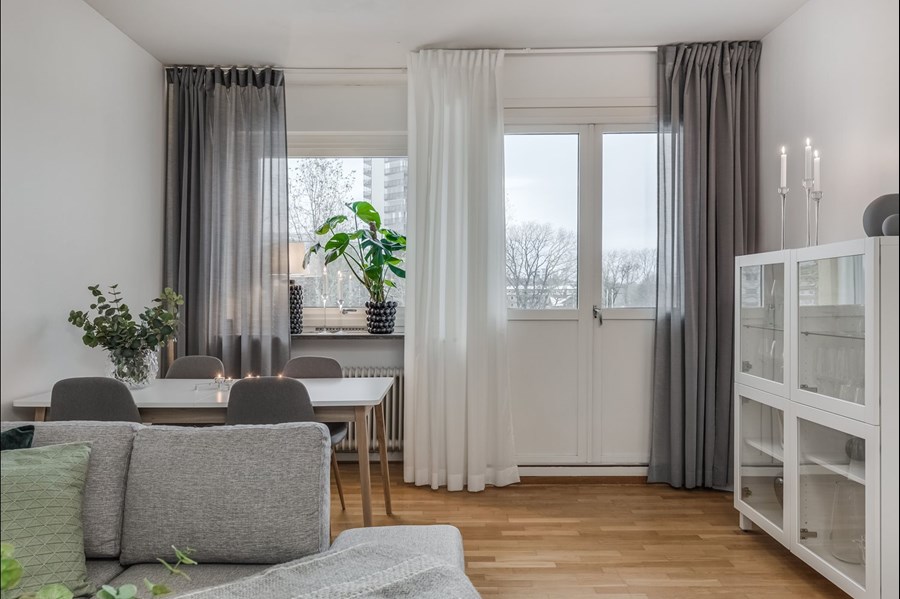 Är du trött på insyn eller att cykla eller ta bilen till pendeltåget? Skulle det vara skönt att ha en tvättmaskin och diskmaskin i bostaden och även golvvärme i badrum? Vill du gärna ha hög takhöjd och även slippa tänka på att teckna en massa avtal hit och dit? Då kan detta vara bostaden för dig då nästintill allt faktureras av föreningen och läget är perfekt. Hushållsel får ni till ett lågt (fast) pris om 150 kr/månad samt IP-telefoni, kabel-TV och internet (fiber, 250 Mbit) för endast 188 kr/månad. Värme, vatten och bostadsrättstillägg ingår i månadsavgiften om låga 3 550 kr. Om ni åker ofta med tåg så kommer ni sannolikt uppskatta läget då ni har perrongen ca 80 m ifrån porten. Jobbar eller studerar ni på högskolan så finner ni den inom ca 500 meters promenadavstånd. Beträffande läget, så är just detta ett av bostadens starka fördelar. Notera gärna att bostaden har ingen insyn och att den även har ett härligt fritt läge med grönskande utsikt från balkongen. Förvaringsmässigt så ligger bostaden bra till då två förråd följer med bostadsrätten varav ett på vinden (ca 6 kvm) och ett i källaren (ca 2 kvm) utöver förvaringsmöjligheterna ni finner i klädkammaren och skjutdörrsgarderoben. Bilen parkerar ni antingen tids nog på föreningens parkeringsplatser (sep. kösystem och föreningen har även nyinstallerade laddstolpar) och medan ni väntar på att få egen parkeringsplats så parkeras bilen med fördel längs gatorna, där det råder fri parkering (se ev. städdagar).