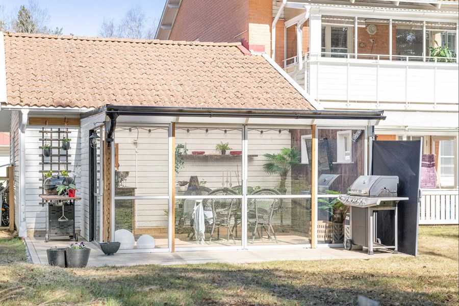Välkommen till populära och barnvänliga Blåbärsdalen i Skogshöjden. Vad sägs om en inglasad balkong, tillgång till eget inglasat uterum med anslutande gräsmatta med bland annat krusbär, hallon och rabarber utöver att ni i skogen finner säsongsvis gott om blåbär, därav namnet Blåbärsdalen. Till bostaden följer även ett stort vindsförråd, egen garageplats samt parkeringsplats för två bilar på infarten, i direkt anslutning till bostaden. Med andra ord en äkta pittoresk radhuskänsla. Byggnaden har fiber installerat och köparen tecknar själv avtal och i dagsläget ingår vatten, kabel TV samt tidigare nämnda parkeringsmöjligheterna. I själva bostaden finner ni diskmaskin, fullhöjdskyl och -frys, tvättmaskin och torktumlare samt fräscha ytskikt men även riktigt härligt ljusinsläpp. Addera gångavstånd till Överby köpcentrum alternativt en härlig cykeltur för att ta sig in till centrum. Vid dåligt väder så uppskattas nog busshållplatsen, vilket ni finner inom ca 50 m men även närhet till soprum, vilket ni finner direkt utanför bostaden.